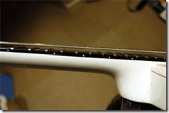 - In the same fashion, check the area where the neck joins the head of the guitar.