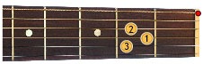 Position each finger with care, according to the above diagram. Make sure that each fingertip is placed directly behind the fret. Firstly, pluck across the strings one by one with your right hand, checking that each string rings clearly and is not muted or buzzing. Play the first Audio or video example to hear how the chord should sound.