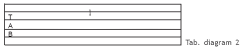 Diagram here.The 1 on the tablature score (Tab. diagram 2) on the last page indicates to you that you place a finger on the first fret of the third string. It is the note C.