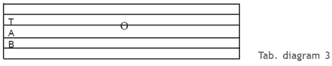 The O on the above tablature score (Tab. diagram 3) indicates to you that the third string is to be played open. This means that you don’t need to place a finger on it. It is the note G.