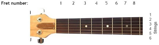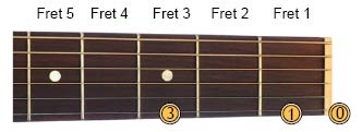 For example, look at the tab diagram to the right and you can see that the 1st string (thinnest string) is being played. The number refers to the fret that you should press down. In this case the number zero is displayed. This means that you shouldn’t press down anything.