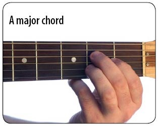 Things become a little more complicated when you are required to play chords, however the basic principals I have already outlined still apply. The only difference is that you will be required to play more strings and hold down more strings with your fingers. In this next example I will show you how to play the chord ‘A’.