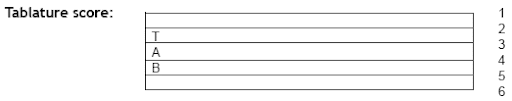 Some of you may notice that this guitar seems upside down in relation to how you play. This is simply the way that guitar music is generally written. Now if you transfer this same model to a written format you will get TAB, which can be seen below.